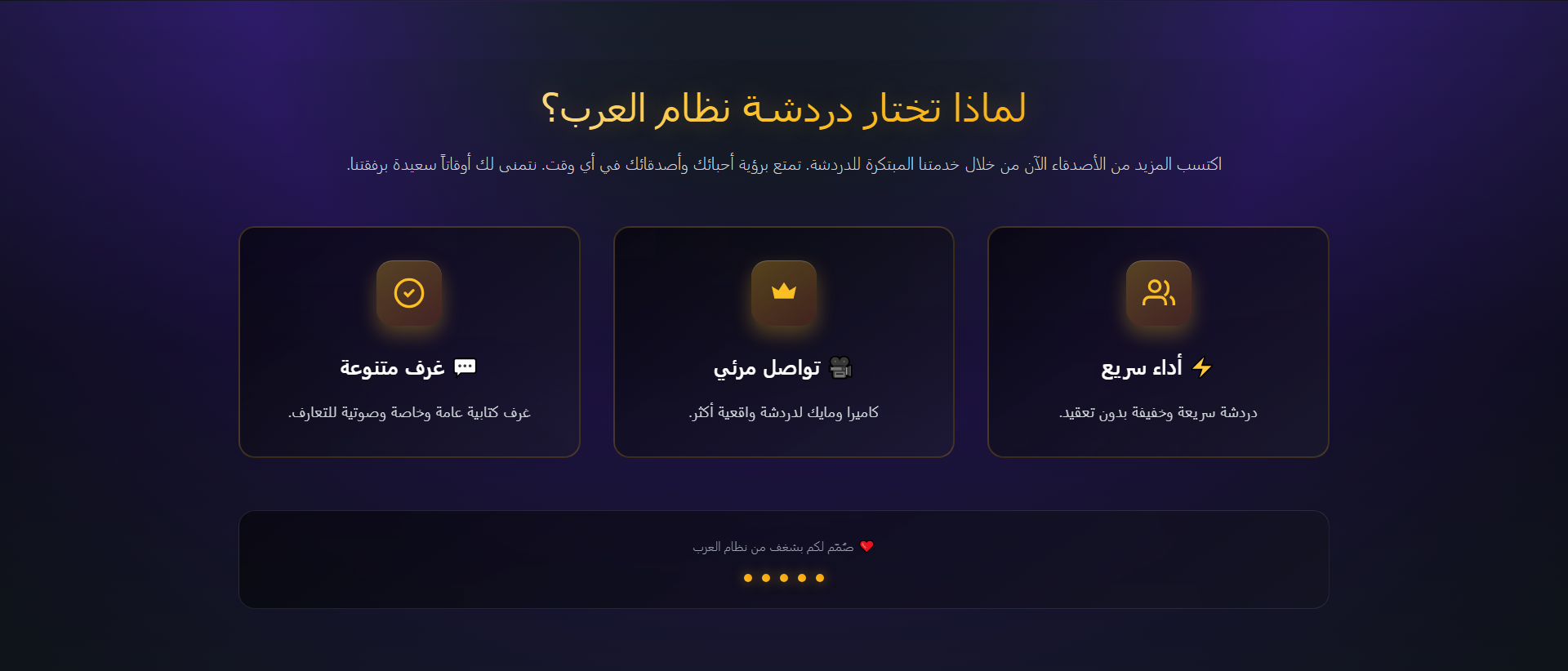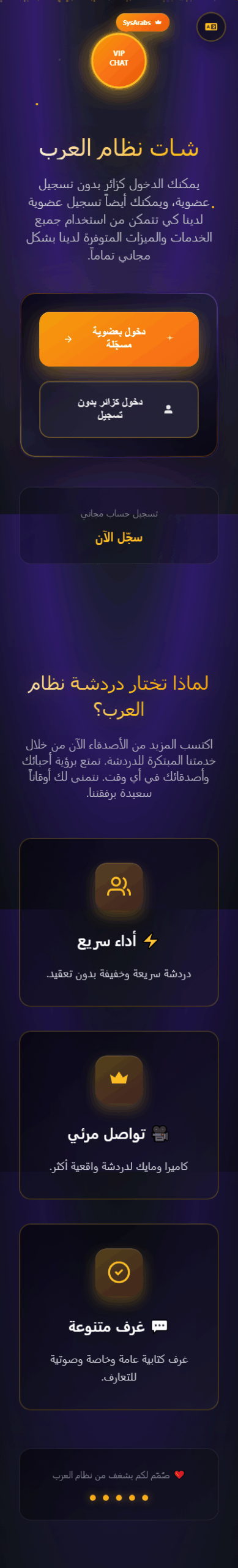 امنح مستخدميك تجربة دخول لا تُنسى مع ستايل مدخل كودي شات الفاخر نظام العرب #1 المصمم خصيصاً لـ Codychat 8.0. واجهة فاخرة تجمع بين الجمال والحركة لتجعل مدخل الدردشة ينبض بالحياة.